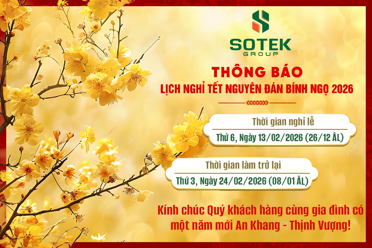 ![[THÔNG BÁO] LỊCH NGHỈ TẾT NGUYÊN ĐÁN BÍNH NGỌ 2026 [THÔNG BÁO] LỊCH NGHỈ TẾT NGUYÊN ĐÁN BÍNH NGỌ 2026](https://sotekvietnam.com/image/cache/catalog/sotek-120x120.jpg)